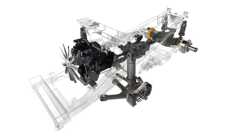 The transmission retarder and neutral coast inhibitor secure safe machine control in downhill conditions, while the engine overspeed protection automatically slows the machine down to safe operating limits.